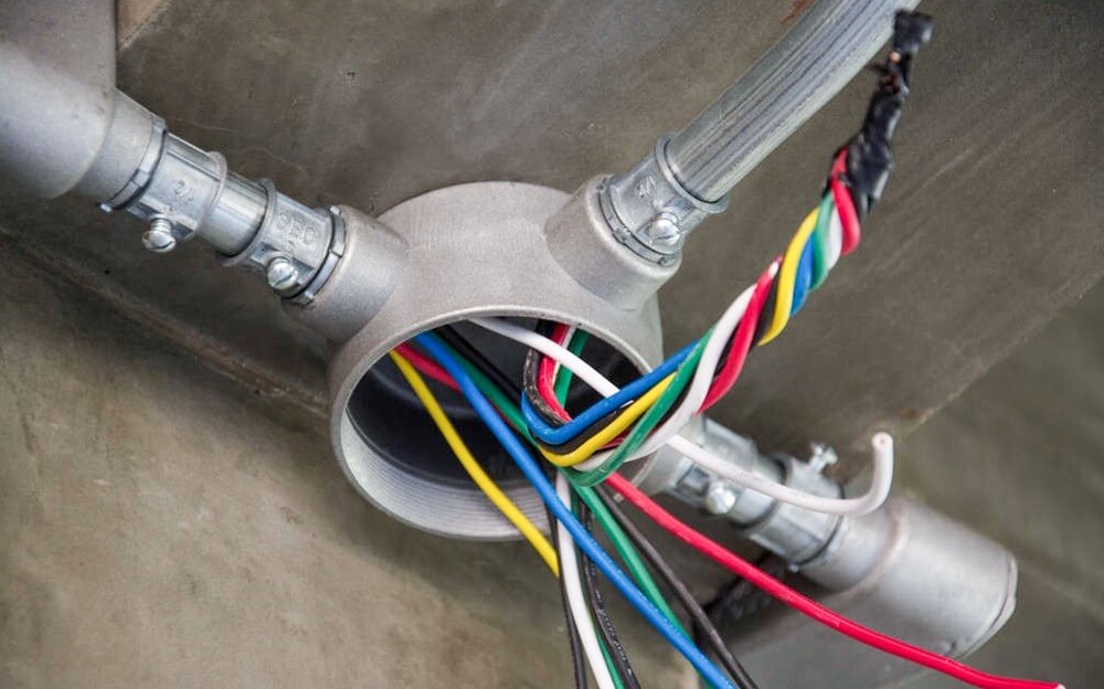 ③ 盒、箱应设置正确、固定可靠,管子进人盒、箱处应顺直,在盒、箱内露出的长度应小于5mm;用锁紧螺母固定的管口,管子露出锁紧螺母的螺纹为2~4 扣。线路进人电气设备和器具的管口位置应正确。